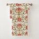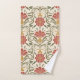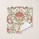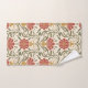 Toallas florales elegantes con un diseño simétrico con flores rojas, hojas verdes y acentos amarillos. Se muestra colgado y doblado, transmitiendo un estilo vintage.