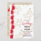 Flores rojas, oro deja la invitación a la boda