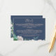 Esta tarjeta de detalles de boda azul con flores románticas de peonías es perfecta para una boda elegante. El diseño floral presenta flores en acuarela en tonos rosados, melocotón y blanco que caen en cascada sobre un fondo azul marino.
