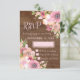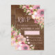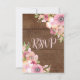 Tarjetas RSVP de boda con un patrón rústico de madera marrón y flores silvestres de color rosa de color rosa vintage.