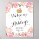 Flores rosadas Señal de bienvenida para ducha de novia