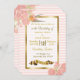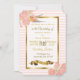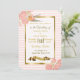 Flores rosadas y doradas e invitaciones a la boda
