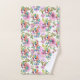 Este conjunto de toallas de baño de unicornio súper lindo presenta un unicornio de anime de arcoíris y un fondo con patrón de flores de rosas rosadas y moradas. Muy femenino. Regalo perfecto para una niña o incluso una adolescente.