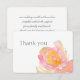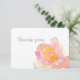 Flores rosas acuarela gracias. Tarjeta postal elegante cuenta con un diseño romántico de acuarela de flores de jardín rosadas y vegetación. Este diseño también cuenta con fuentes modernas y elegantes para el diseño del texto. Parte de una colección de bodas. ¡Comprueba mi tienda para ver todo el conjunto de bodas para este diseño!