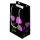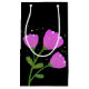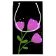 Presenta un diseño floral sencillo de color rosa dibujado a mano con detalles de Relieve metalizado dorado, sobre un fondo negro.