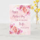 Feliz Día de la Madre para esposa con rosas de acuarela rosa y morado rosado y lilatas y verso de corazón.
