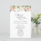 Añada un toque personal a la celebración de su boda con estos artículos fiestas elegantes y memorables. El diseño presenta flores de color rosa y blanco y vegetación en un fondo blanco.
