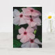 Mi obra de arte original aparece en esta tarjeta de nota floral, que consiste en mi fotografía original de flores rosas de Periwinkle en un jardín, también llamadas Impatiens, con un estilo ilustrado de forma pintoresca para una apariencia artística. ¡La tarjeta está en blanco dentro para que puedas escribir tus cartas y notas personales!