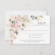 Flores rosas y blancas con tarjetas RSVP de vegeta
