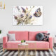 Hermosa acuarela de pintura mural de lienzo, flores silvestres y mariposa.