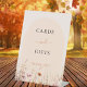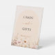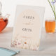 Un fondo de color crema y beige y un arco de color melocotón. Decorado con flores silvestres al estilo acuarela en beige, rosa. Con el texto: Tarjetas y regalos. ¡Gracias!