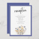Esta tarjeta de inclusión para recepción de boda moderna y elegante Blue Wildflowers presenta hermosas flores silvestres azules, amarillas y beige, tipografía moderna y un suave color azul, totalmente personalizable con sus nombres, detalles de la boda y un código QR para el sitio web de su boda. El diseño formal y la redacción agregan un toque de elegancia a su celebración de boda.