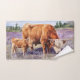 Representación serena de una vaca y ternera de Highland en medio de un campo de flores silvestres violetas. Los suaves tonos tierra de las vacas contrastan con los vivos acentos florales, creando una armoniosa y rústica celebración de la naturaleza y la familia.