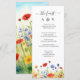 Incorpore el encanto de la naturaleza en la recepción de su boda con nuestro menú personalizable de flores silvestres de prado primaveral. Este encantador menú presenta una impresionante representación de un prado primaveral adornado con una vibrante variedad de flores silvestres. La ilustración de acuarela captura hermosamente la esencia de la belleza de la naturaleza, proporcionando un telón de fondo pintoresco para los detalles culinarios. La paleta de colores dominante incluye flores amarillas impresionantes que irradian calidez y alegría, que se transforman sin problemas en una cascada de flores rojo-naranja y, finalmente, delicadas flores azules que añaden un toque de serenidad. Para personalizar aún más este menú, haga clic en el enlace "personalizar más" y utilice nuestra herramienta de diseño para ajustar esta plantilla según sus preferencias.