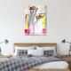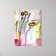 Arte frpm, pintura acuarela original de flores silvestres coloridas en un jarrón de vidrio con arte de línea simple y abstracto. Arte caprichoso simple y único.