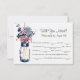 Tarjeta de respuesta LIB coincidente perfecta para una boda de estilo campestre o tal vez simplemente ¡encanta los frascos de Mason! Frasco de Mason colgado de un gancho lleno de flores silvestres campestres. Un color de fondo blanco con dibujo de un frasco de Mason lleno de flores silvestres campestres. Los colores mostrados son azul marino, azul acero y rosa coral. Si tiene alguna pregunta sobre este diseño o desea un cambio de color, por favor envíeme un correo electrónico a paula@labellarue.com. ¡Consulte también las tarjetas de RESPUESTA, RECEPCIÓN y ASIENTOS DE INVITADOS para que coincidan!