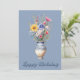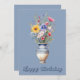 Feliz cumpleaños para ella. Un jarrón con hermosas flores. Una tarjeta de cumpleaños única que seguramente encantará a esa persona especial en tu vida. Un jarrón único repleto de hermosas malvas, flores rosas y amarillas contrastadas con hojas y hierbas verdes. Hermoso, único, elegante diseño de jarrones y letras de texto en relieve. Tarjeta de cumpleaños para escribir tu mensaje personalizado en la parte posterior.