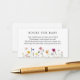 Una tarjeta de inserción para la ducha para bebés solicitada por un libro. Con flores silvestres con poema: "UNA PEQUEÑA PEQUEÑA PETICIÓN, ESPERAMOS QUE NO SEA DEMASIADO DIFÍCIL POR FAVOR TRAER UN LIBRO EN LUGAR DE UNA TARJETA QUE ELLOS PRESIONARÁN EL LIBRO, BIEN AMADOS O NUEVOS POR FAVOR, ¡RÓTULO EL INTERIOR CON UN MENSAJE DE USTED!"