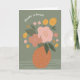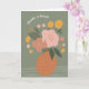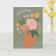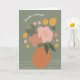Esta tarjeta de bienvenida plegada de agradecimiento incluye un ilustracion abstracto y moderno de flores rosas y amarillas en un jarrón de terracota sobre un fondo verde sabio. La parte delantera dice simplemente "gracias a un grupo" y el interior está en blanco para la versatilidad.
