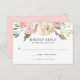 Elegantes tarjetas RSVP de boda floral con un borde superior de rosas acuarelas y hojas en tonos suaves de rosa, marfil, malva y verde. Personalice las tarjetas de respuesta del boda agregando su RSVP por fecha. El lado inverso muestra un fondo rosa claro sólido. Diseñado para coordinar con nuestra colección de bodas de Flores sutiles.