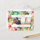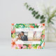 Esta postal de dos fotos de agradecimiento de verano tiene un tema tropical brillante y colorido. El diseño floral acuático incluye hibiscos rosas, flores rosadas y melocotones, hojas tropicales verde esmeralda. Personaliza con dos de tus fotos favoritas, un mensaje de caligrafía personalizado (mostrado como "amor y agradecimiento"), tus nombres y tu fecha boda. En la parte posterior de la postal, añada un mensaje personal más largo.