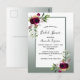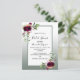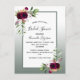 Delante: Gradiente verde sabio con un marco verde sabio y blanco. Decorado con flores, rosas en burdeos con vegetación. Plantillas para los nombres de la novia y detalles del fiesta. El nombre y la ducha de novia están escritos con un guión de estilo con letras a mano, letras de color negro. Fondo: fondo de degradado verde sabio. Sugerencia: Si no desea que se vea como una postal, haga clic en personalizar, vaya a la parte posterior y quite el separador y el sello postal.