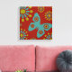 Flores y mariposa con pintura mural de tela roja, verde azulada y verde. Para más arte en la pared púrpura, visita el resto de esta tienda.