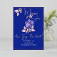 Esta es una boda de 5' x 7" Save The Date se muestra en azul real con flores violetas y acentos de Relieve metalizado de oro rosa y tipo de Relieve metalizado. Presenta un diseño de Tying The Knot. Todo el Relieve metalizado que se propone por invitación es un auténtico Relieve metalizado italiano, disponible en oro, plata y oro rosa. Al revés se incluyen los nombres de la pareja y el texto de "¡Salva la fecha!". Mensaje MineByDesign para asistencia con órdenes de personalizados.