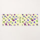 Flores violetas y brotes en azul, rosa y morado. Hojas verdes sobre fondo crema. Diseño alegre de patrones repetidos. Un lugar para tu nombre. La inspiración vino de una de mis plantas.