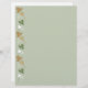 Cabezal floral con flores y hojas verdes, beige y marrón.