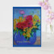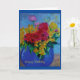 Una preciosa carta de cumpleaños, invitaciones, celebraciones - colores brillantes de flores en un jarrón azul. Personalizar la tarjeta, agrega tu propio texto o imágenes