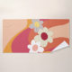 Resumen de diseño de estilo retro colorido con flores florecientes y decoración de tonos amarillos, naranjas y rosados con fondo rosa pastel