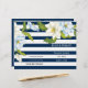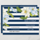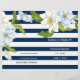 Las rayas azules oscuras floridas floridas ceremonia boda floral moderna y programa plegado fiesta con elegantes flores blancas y dos tonales azules con hojas verdes en un patrón rayado de rayas azul marino y blanco. Esta elegante plantilla de boda contemporánea es totalmente personalizable y es ideal para un boda de primavera o verano. Doblarlo en el centro para tener un programa de bodas de estilo plegado. Elija sólo este tipo de valor de papel a medida que se dobla bien.