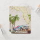 Hermoso mapa ilustrado del estado de Florida y las islas de la región en un hermoso estilo vintage con un auto retro de los años 50.