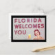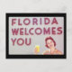 La Florida de los años 50 te da la bienvenida. Una mujer sostiene una postal inspirada en el jugo de naranja.