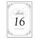 Elegante escritura a mano caligrafía script y marco de floritura en clásico negro y blanco, limpio y formal, grandes tarjetas de número de mesa de boda para boda vintage, boda tradicional y boda clásica todo el año.