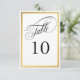 Un diseño elegante de número de mesa con letra manuscrita bordeado en un amplio marco dorado para recepciones de boda u otros eventos. Los números de mesa están en ambos lados de la tarjeta. Cree una tarjeta separada para cada mesa necesaria.