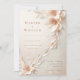 Esta elegante invitación a la boda presenta un impresionante diseño floral en 3D, con suaves pétalos de marfil y rubor que parecen fluir con gracia a través de la tarjeta. Con un delicado fondo pastel, el diseño desprende romanticismo y sofisticación, perfectas para los bodas modernos. Los intrincados florales le dan un toque de lujo, lo que lo convierte en una elección ideal para las parejas que buscan una estética boda atemporal y única. Personalizable completo para su día especial.