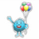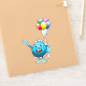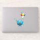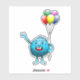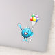 El pequeño monstruo azul Fluffy & Cute con globos sobre un pegatina de vinilo corte personalizado.