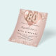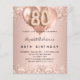 Tenga en cuenta que esta invitación está en papel de volante y es muy delgada. Los sobres no están incluidos. Para invitaciones más gruesas (el mismo diseño) visite nuestra tienda. Por un elegante cumpleaños número 80. Un rosa de oro falso de aspecto metálico. Decorada con oro rosa, glitte falso rosado, chispas y globos. Personalice y agregue un nombre y detalles del fiesta. El nombre está escrito con un guión de estilo con letras a mano, número 80 con fuentes de estilo globo.