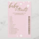 Una elegante ducha de bebé "adivina las características del bebé" hoja de juego para un chica fiesta de ducha de bebé con un tema de marea. El fondo de color rosa rubor del resorte está texturado y recubierto de un patrón floral dulce de margaritas blancas y amarillas.
