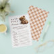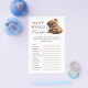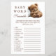Añade algo de diversión a tu ducha de bebé con este juego de palabras adorables. Con un osito de peluche dormido, esta encantadora tarjeta reta a los huéspedes a descifrar palabras relacionadas con el bebé. ¡Una forma perfecta de entretener a todos!