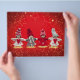 Envía abrazos cálidos y mucho amor en Navidad con estos adornos de Navidad sobre un fondo rojo.