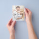 Transparencia de presupuesto que cubre la foto personalizada y personalizada en la parte delantera y trasera de elegantes y modernas invitaciones de boda Save the Date, incluye una tipografía de guión hermosa y elegante para la celebración especial del día de la boda.