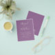 El presupuesto Personaliza esta Dusty Lavanda Púrpura Ametista Invitación simple y elegante de doble cara con tu mensaje y detalles. Esta invitación a la moda incluye una moderna y elegante tipografía de escritura manuscrita para la celebración especial del Boda a ser.