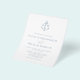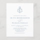 Este elegante y económico diseño minimalista de invitación a la boda náutica presenta un monograma de ancla en la parte superior con las iniciales de la novia y el novio, con un simple fondo blanco y un polvoriento texto clásico y elegante, y un toque de caligrafía de escritura para el "y". La parte trasera tiene un fondo azul polvoriento a juego. Esta invitación a una boda costera de bajo costo es un tamaño más pequeño impreso en papel más barato, sin un sobre. Si desea otra versión de presupuesto en un papel un poco mejor, con un sobre, que cueste un poco más, por favor contáctame a través de Zazzle Chat, o usa la opción Transferencia para transferir a una "hoja de papel plana" de 4.5"x 5.6".