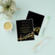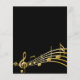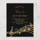 Una moderna y moderna tarjeta de invitación para la fiesta de cumpleaños número 50 (o cualquier edad) para hombres y mujeres. Antecedentes negros clásicos y notas musicales, letras de colores dorados. Personalice y agregue la información de su fiesta. Atrás: Color negro imita notas de música dorada.