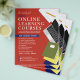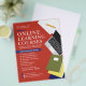 Rojo Cursos de Aprendizaje en Línea Aviso en la Escuela Incluye Ilustraciones de Ordenador Portátil, Libros Escolares, Papel y Lápiz. Personalizar A Tu Gusto.
