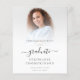 Una excelente alternativa de PAPEL (no cartulina) SIN SOBRES en un tamaño MÁS PEQUEÑO de 4,5” x 5,6” y a un precio económico. (Los sobres estándar A6 son el tamaño más cercano que cabe) Anuncio de graduación de foto de graduado de 2023 Minimalista de papel. Sencilla elegancia para enviar la feliz noticia de tu graduado. El graduado está en una escritura elegante con florituras elegantes. Personalice fácilmente el texto según sus propias necesidades, incluso en el reverso, y reemplace la imagen de muestra con la suya.