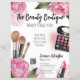 Volante Artista De Maqueta De Color Floral Rosa. Repleta de tonos vivos y floridos, esta impresión es un festín visual perfecto para artistas de maquillaje, bloggers de belleza, influenciadores y todo aquel que busque un toque de colorida elegancia floral con un toque de glam. Con peonías rosadas brillantes, paleta de maquillaje, pinceles de maquillaje y lápiz labial. Puede realizar el personalizar de todo el texto y el código QR; también puede quitar el QR si lo prefiere. Ideal para reservar citas, clases de cosmetología, eventos especiales y más!